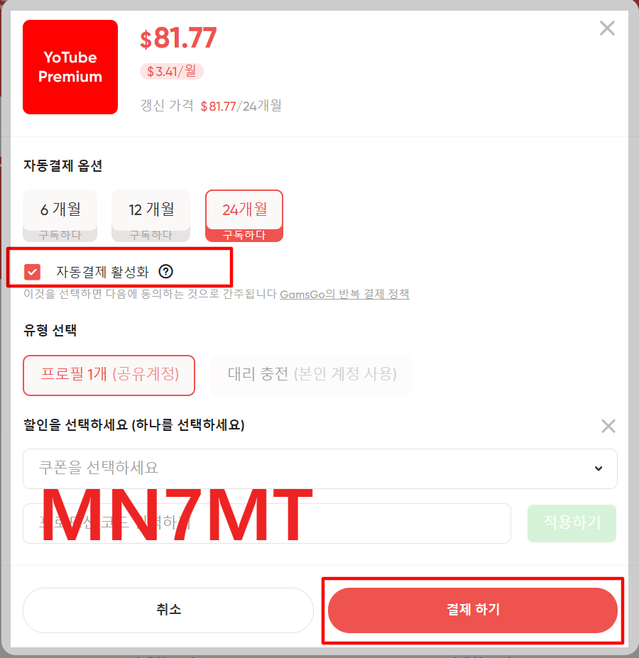 - ✅ 프로모션 코드: MN7MT