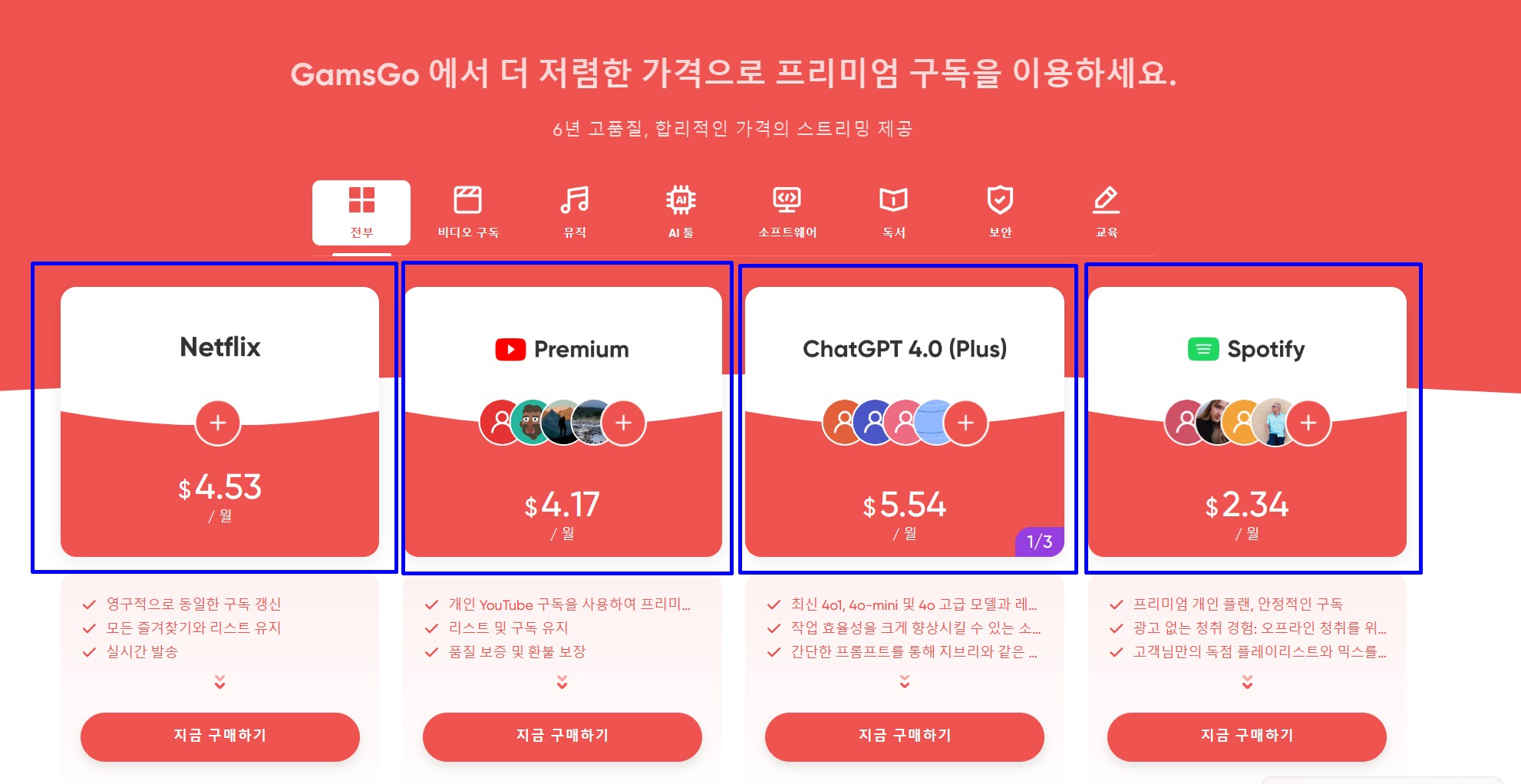 겜스고는 다양한 디지털 콘텐츠 구독 서비스를 보다 저렴하게 제공하는 중개 플랫폼입니다. 그 중에서도 가장 인기 있는 서비스는 바로 유튜브 프리미엄으로, 정가보다 절반 이하의 가격으로 동일한 기능을 사용할 수 있도록 해줍니다. 겜스고는 그룹 단위의 프리미엄 계정을 배분하는 방식을 사용하며, 이는 가족 공유 계정 구조를 기반으로 합니다. 사용자는 자신의 구글 계정으로 접속하여 초대 메일을 받고, 이를 통해 유튜브 프리미엄 기능을 온전히 누릴 수 있게 됩니다. 중요한 것은 이러한 방식이 유튜브의 정책과도 일정 부분 부합하기 때문에, 차단되거나 문제가 발생할 확률이 매우 낮다는 점입니다. 실제 사용자 리뷰에 따르면, 1년 넘게 안정적으로 이용 중이라는 평이 많습니다. 가격 경쟁력 외에도, 백그라운드 재생, 오프라인 저장, 광고 제거 등 기존 프리미엄 기능을 모두 동일하게 제공한다는 점이 큰 장점입니다.