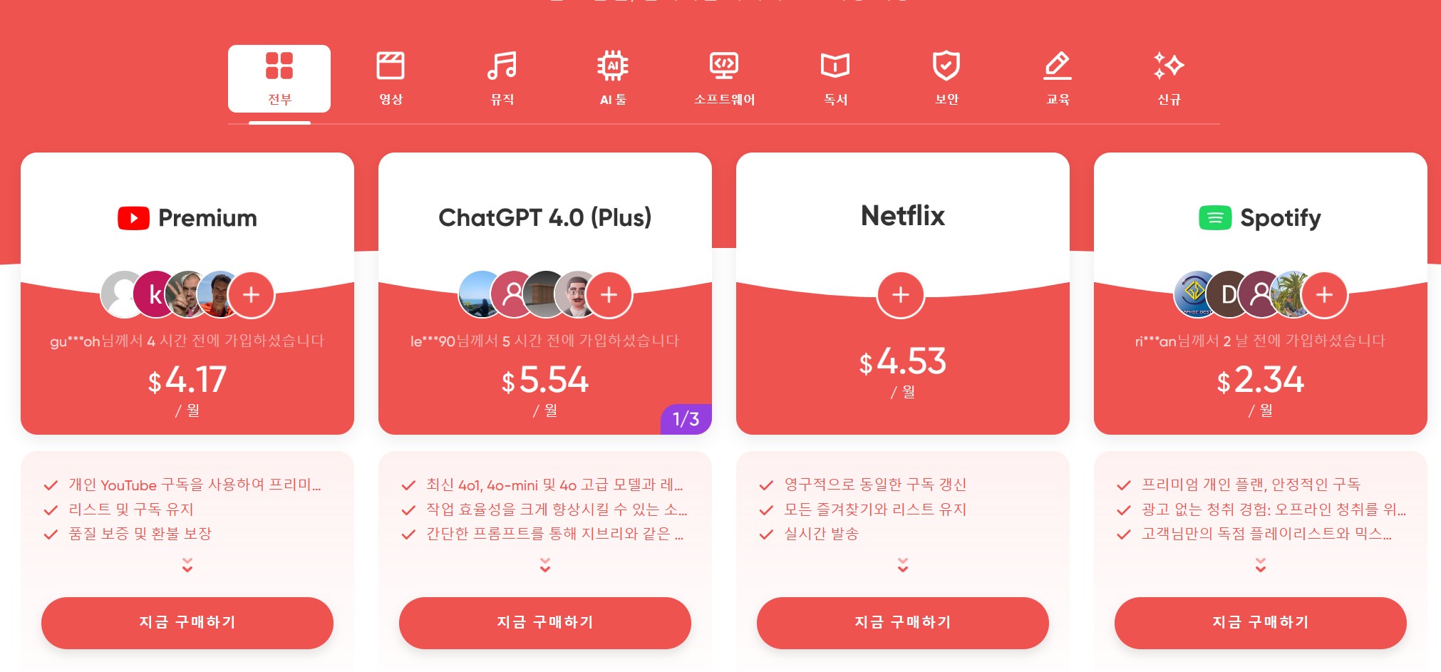 겜스고(GamsGo)는 넷플릭스, 유튜브, 챗GPT 등의 프리미엄 서비스를 가족 요금제처럼 공유해 공식 대비 최대 70% 저렴하게 이용할 수 있는 플랫폼입니다.