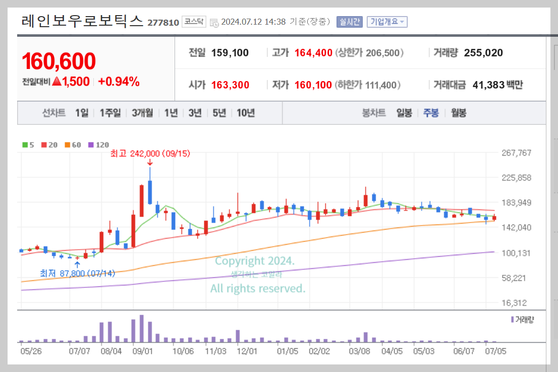 현재 주가: 160,000원 (작성기준 7월 12일 종가)