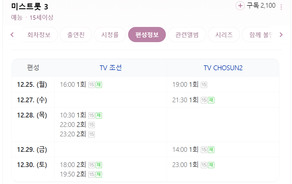 ⭐ 미스트롯 3 정규 방송시간 매주 목요일 밤 10시 2023.12.21 - 2024.3.7 12부작