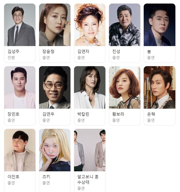 김성주(MC), 장윤정, 김연자, 진성, 붐, 장민호, 김연우, 박칼린, 황보라, 은혁, 이진호, 츠키, 알고 보니 혼수상태