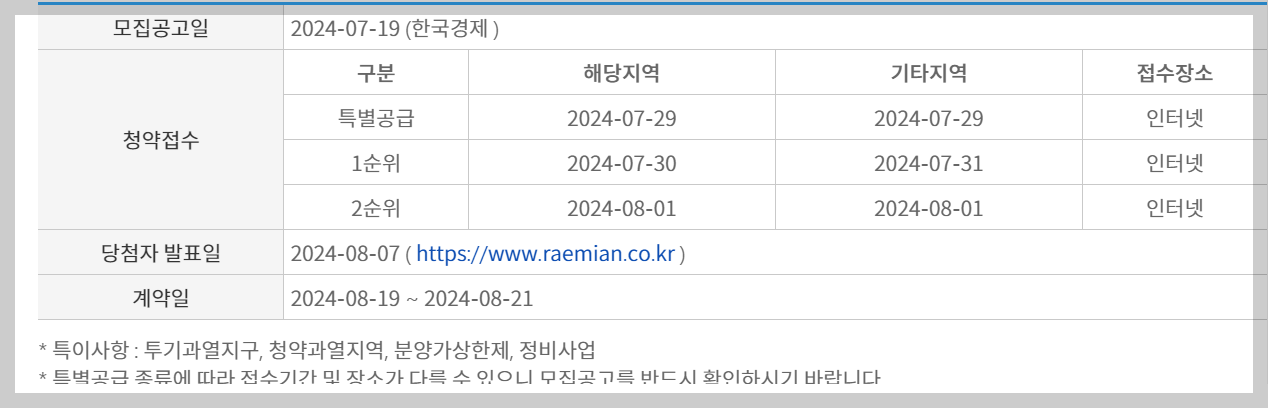 • 특별공급: 2024-07-29 (해당 지역 및 기타 지역 모두 인터넷 접수)