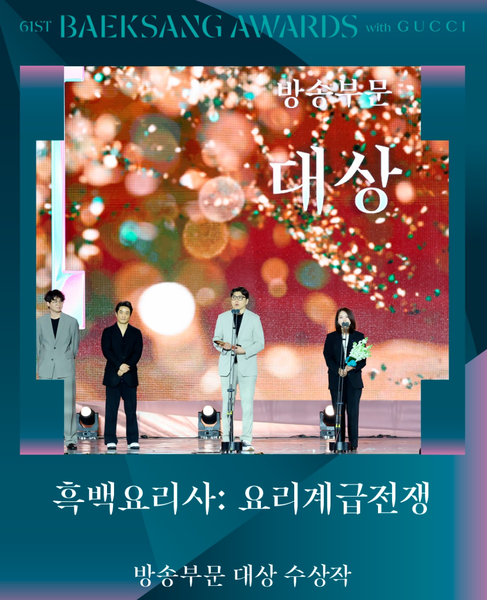 이번 시상식에서 가장 주목받은 순간은 넷플릭스 예능 프로그램 '흑백요리사'가 방송 부문 대상을 수상한 일입니다. 예능 자체가 대상을 받은 것은 사상 처음이며, 이는 포맷과 메시지 모두에서 차별화된 결과였습니다.