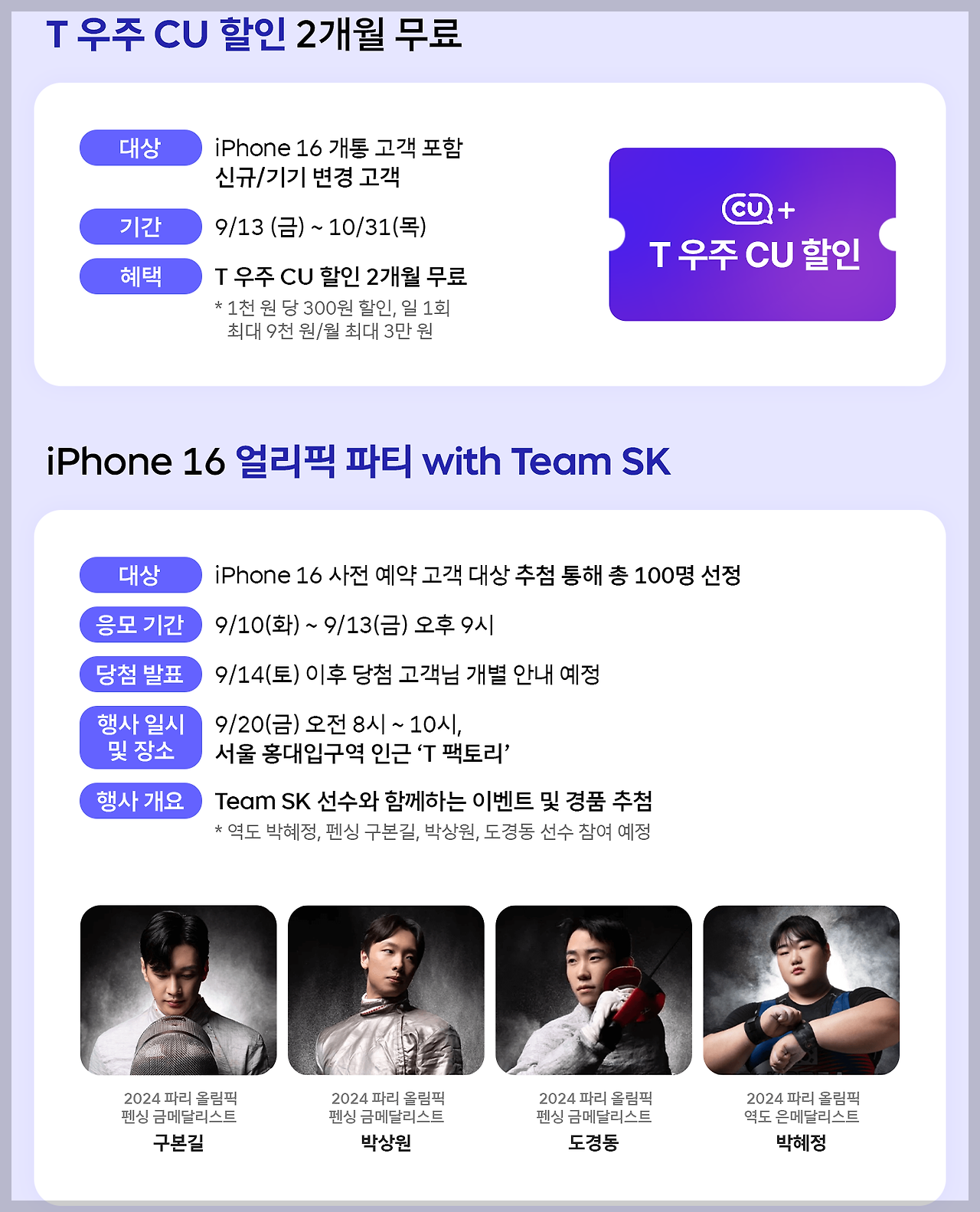- CU 할인 : CU에서 두 달간 사용할 수 있는 할인 쿠폰도 제공돼요.