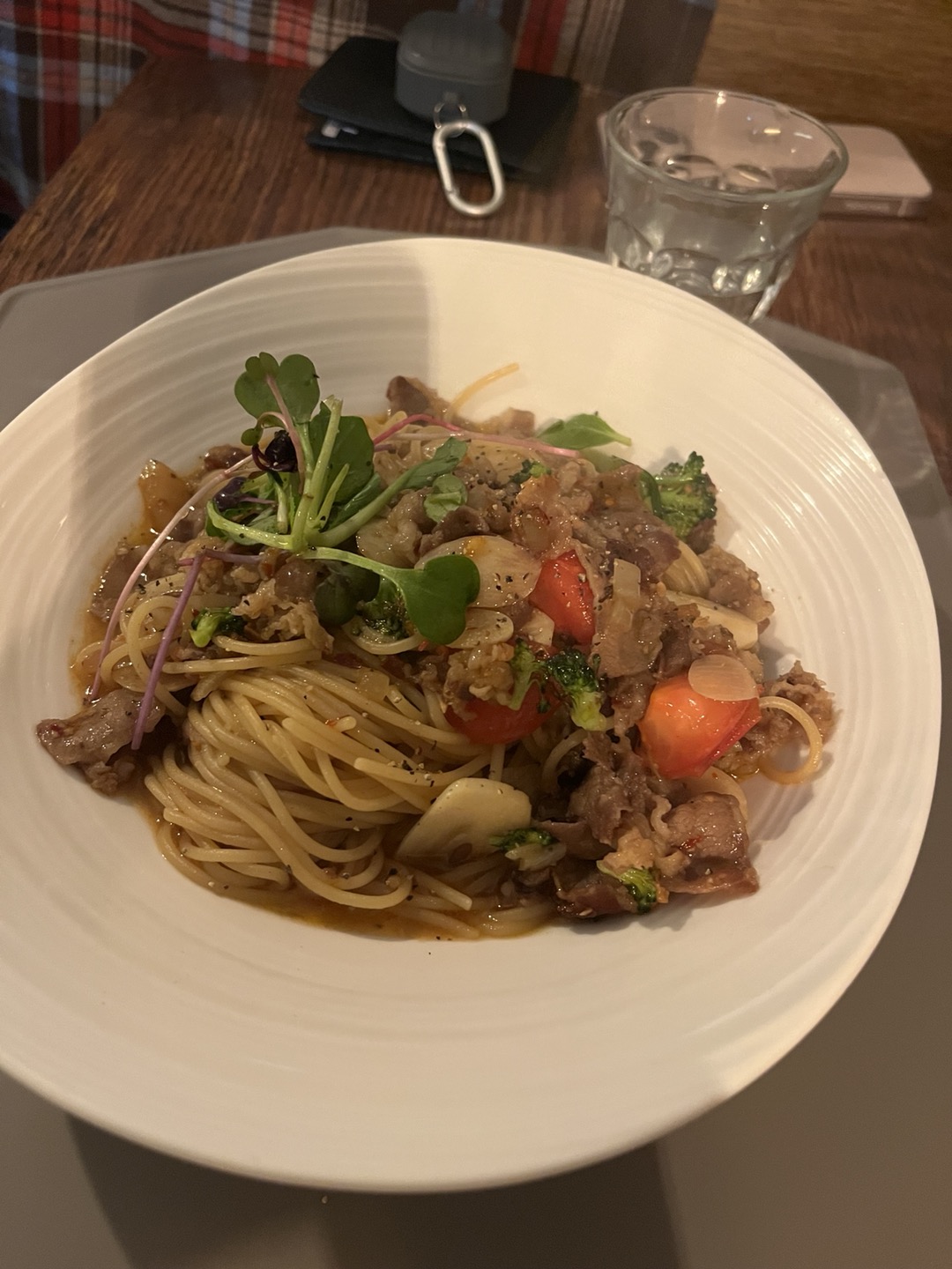 오일이 과하면 느끼하고 온 입안에 오일만 맴돌아서 사실 오일 파스타는 셰프의 고난도 요리인 거 같다. 브로밀에서 선택한 차돌박이 오일 파스타는 지나치지도 않고, 모자라지도 않은 오일리한 풍미와 쫄깃한 얇은 파스타 면, 잘 익은 차돌박이가 어우러져서 평범하지 맛을 구현한 파스타였다. 곁들여진 토마토, 버섯, 편마늘도 적당량을 넣어주시니 모든 음식의 색깔이 잘 어울리는 제법 잘 어울리는 오일 파스타였다.