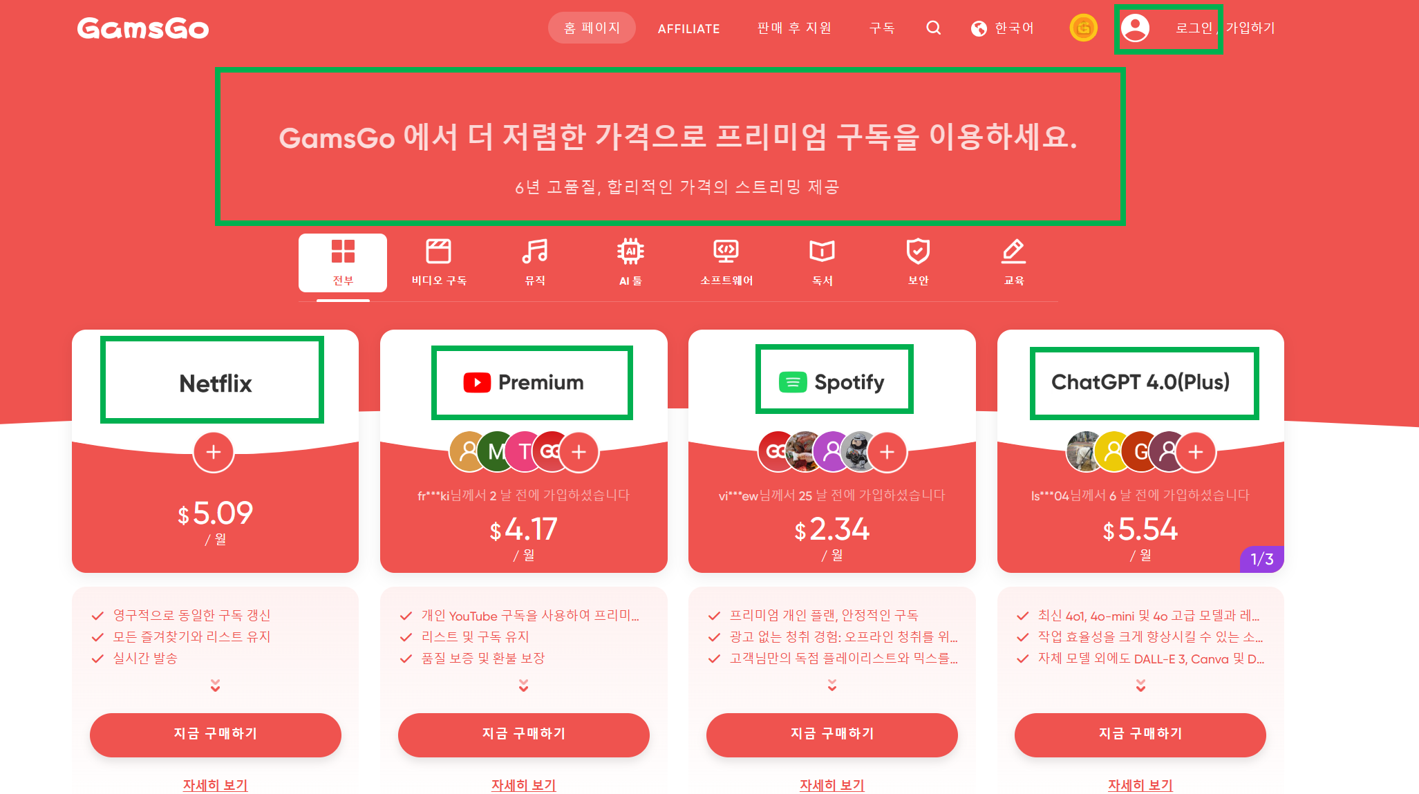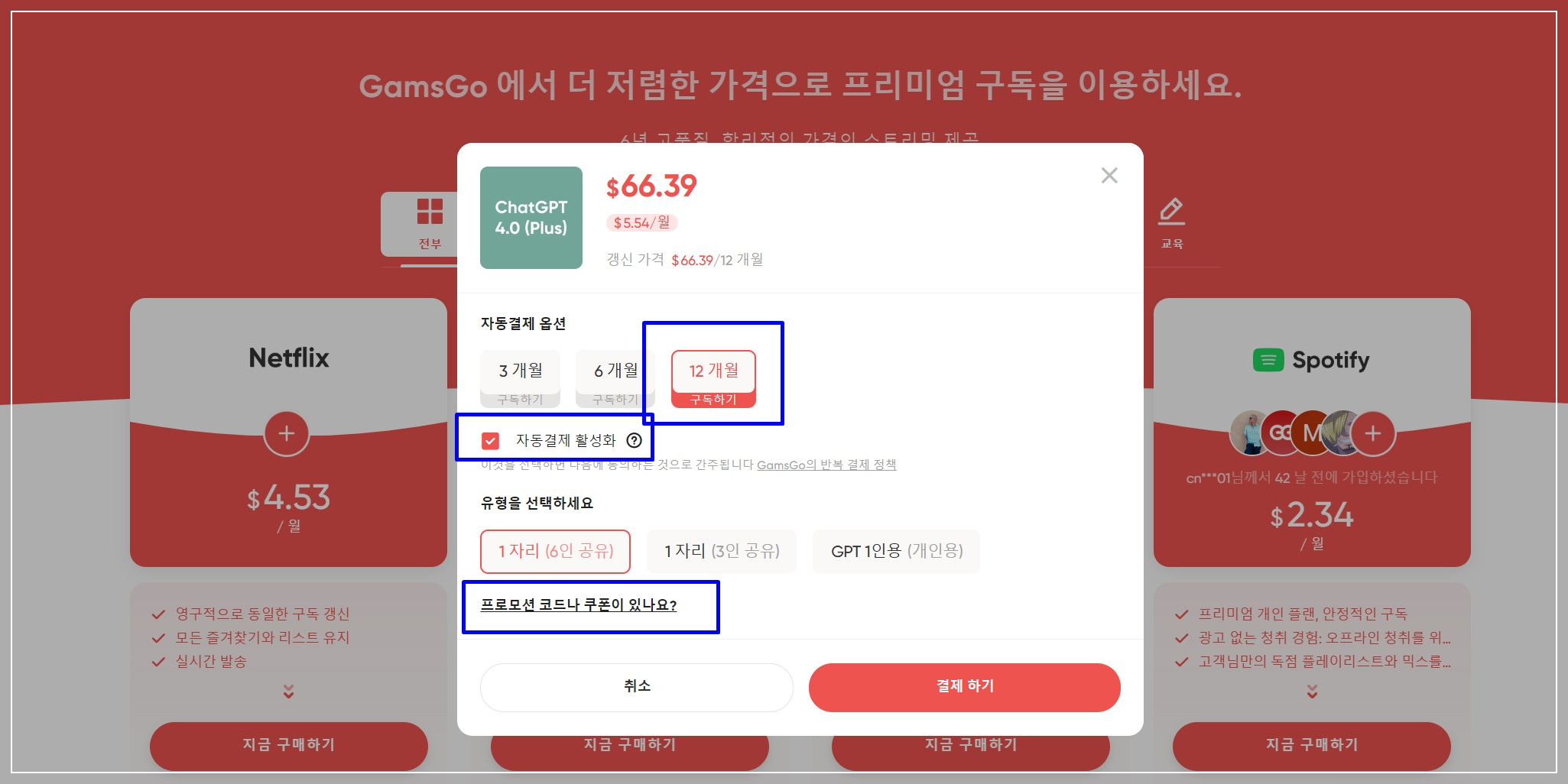 - 겜스고 메인 페이지에서 'ChatGPT Plus' 상품 선택