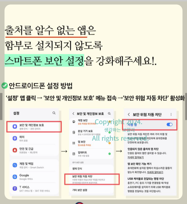 보안 앱 설치 - 신뢰할 수 있는 보안 소프트웨어를 설치하여 악성 앱 및 링크 차단