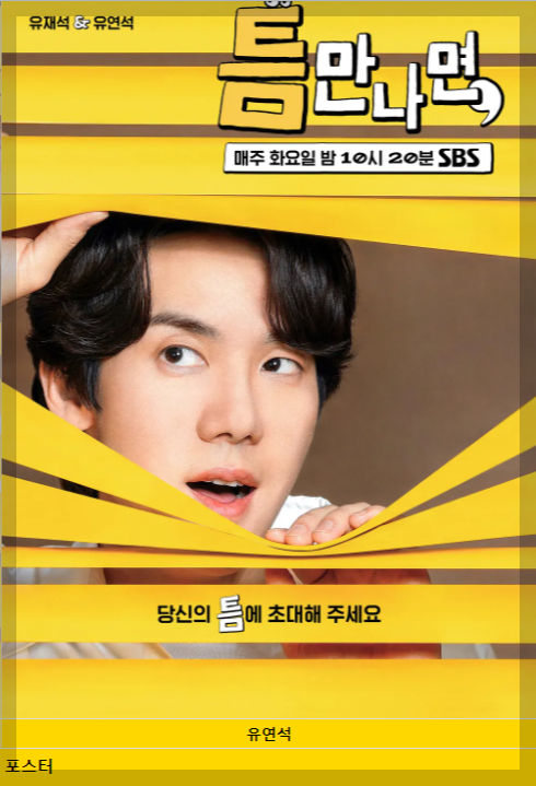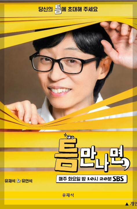 - 방송 채널: 에스비에스 - 제작진: 연출 최보필, 진행 유재석, 유연석