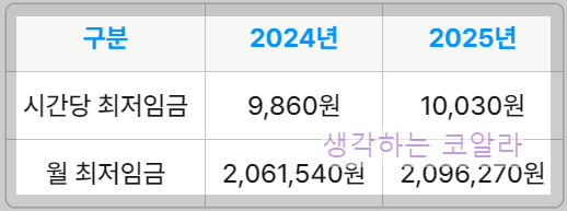2025년 시간당 최저임금: 10,030원